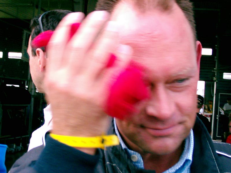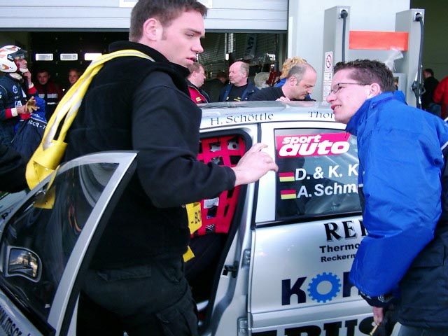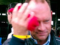 Danyel kommt grinsend aus dem parc-fermé